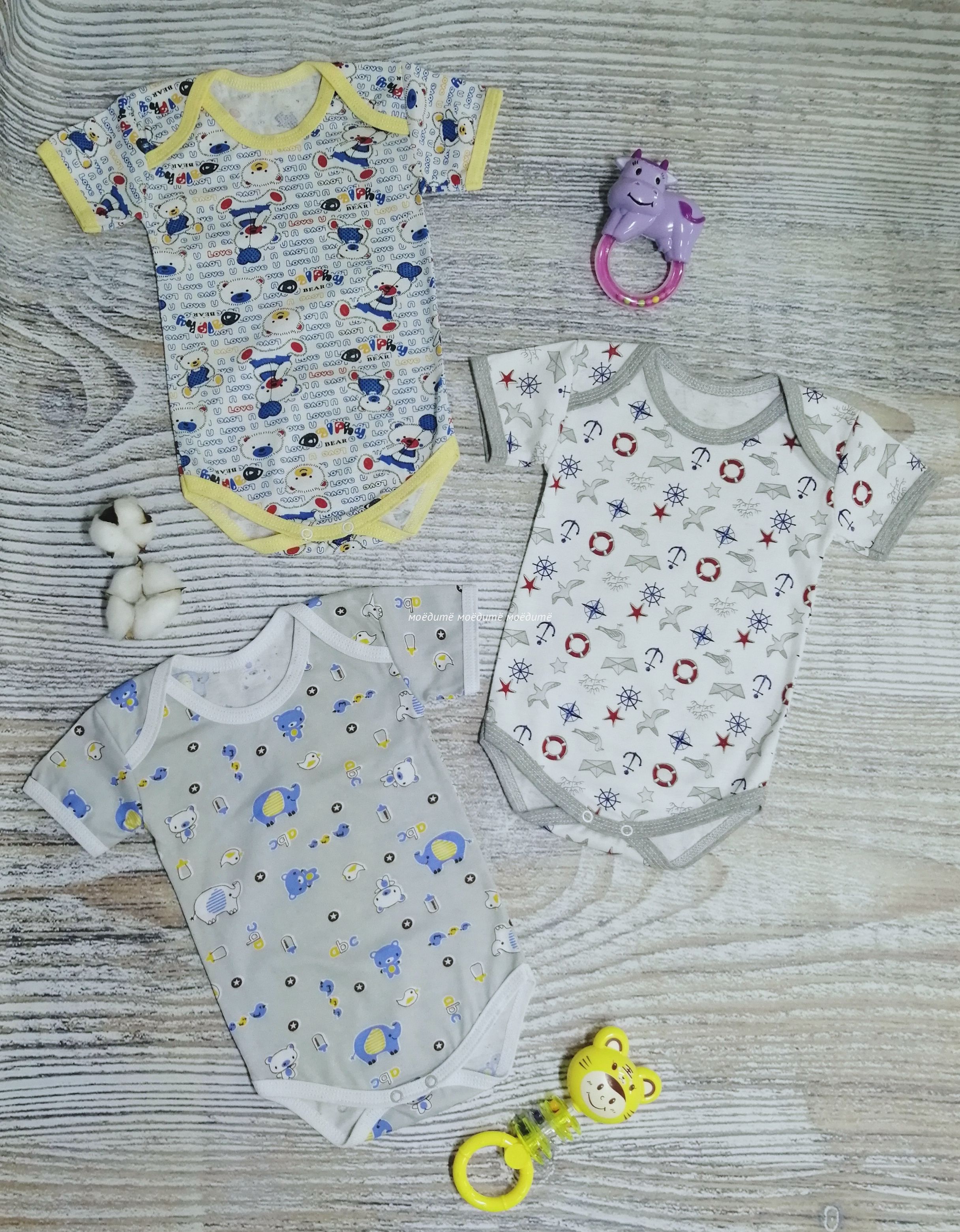 Боди с коротким рукавом, с кнопочками между ножек,  плечики  "бабочка".