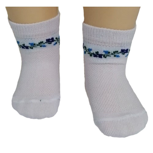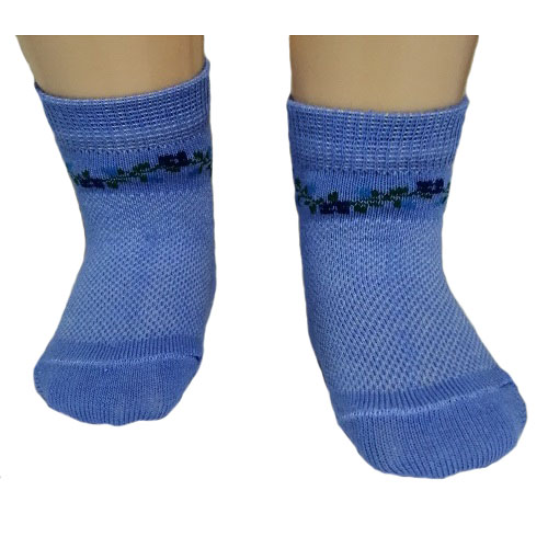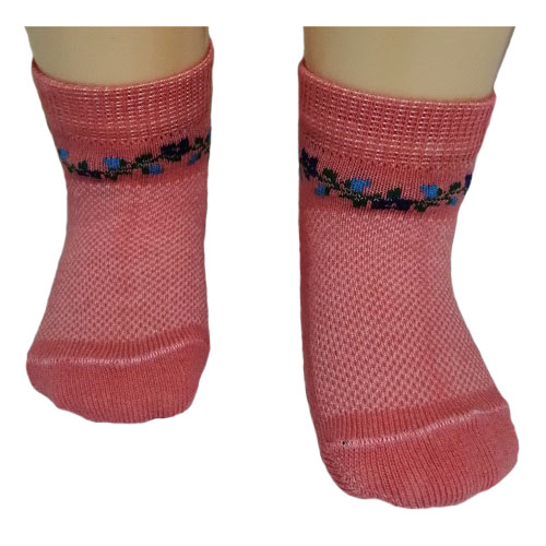 Носки укороченные в сеточку однотонные с орнаментом под резинкой в виде цветочков.